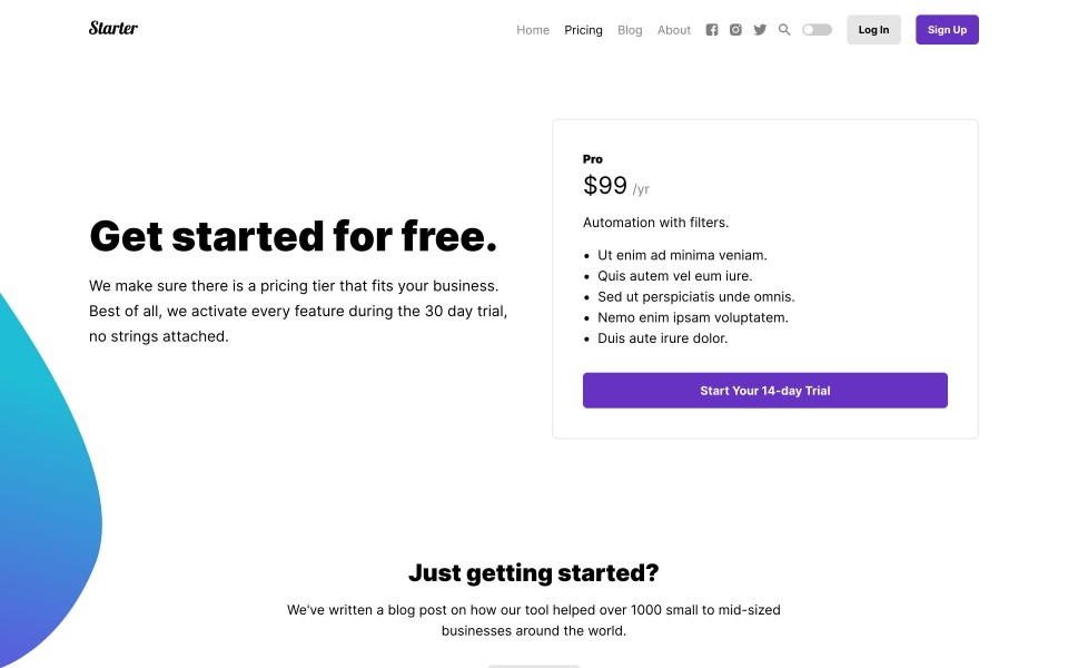 A modern theme to create a website for your business. Starter theme is built on a custom framework making it light and super fast, perfect for a stunning and responsive website.